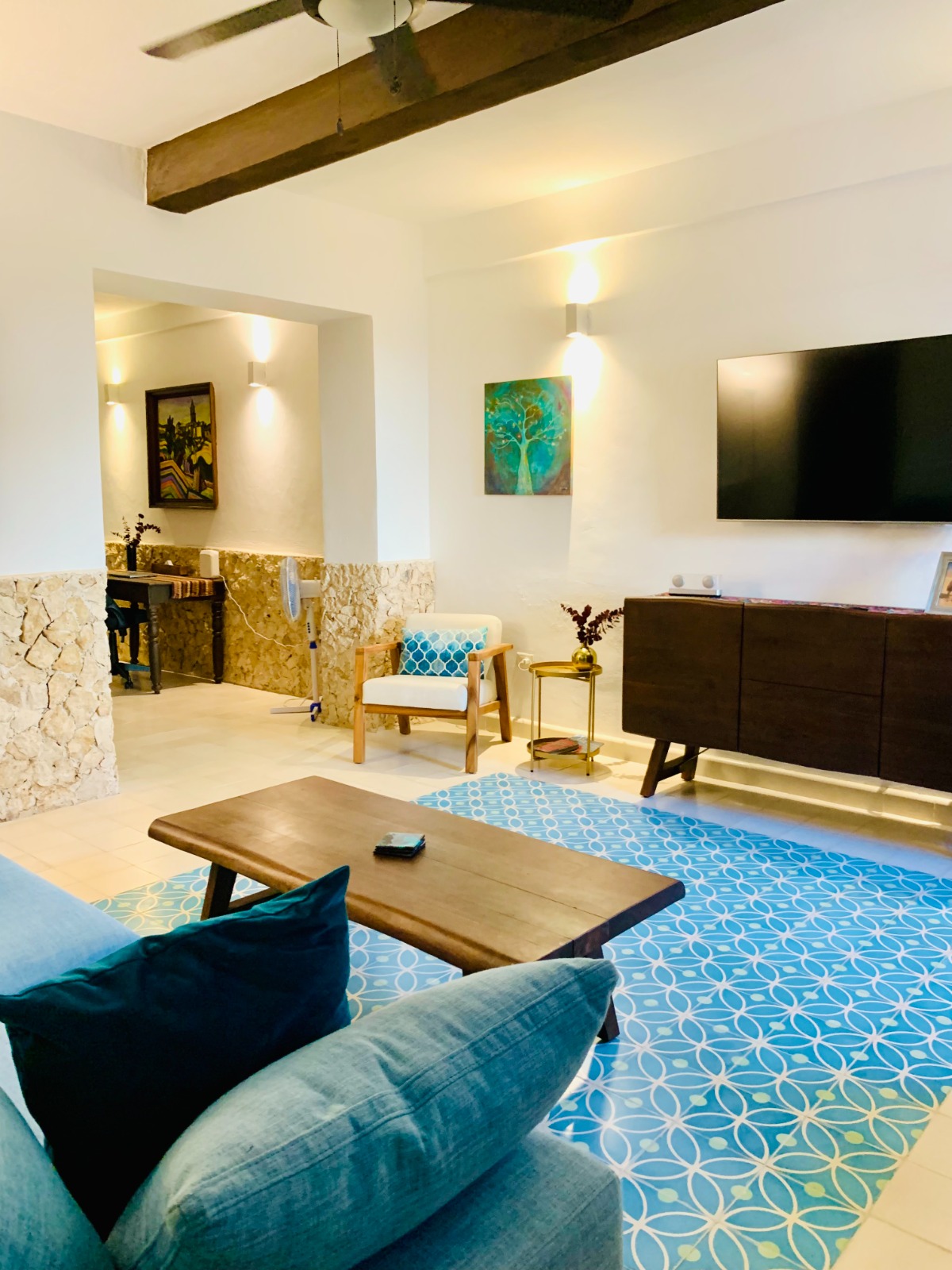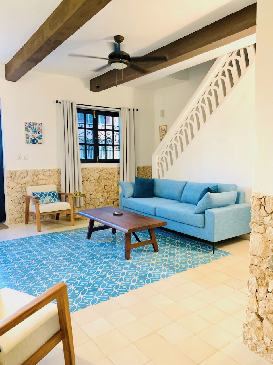 -On the ground floor is the living room with comfortable sofas and credenza furniture practically new from recent purchase.