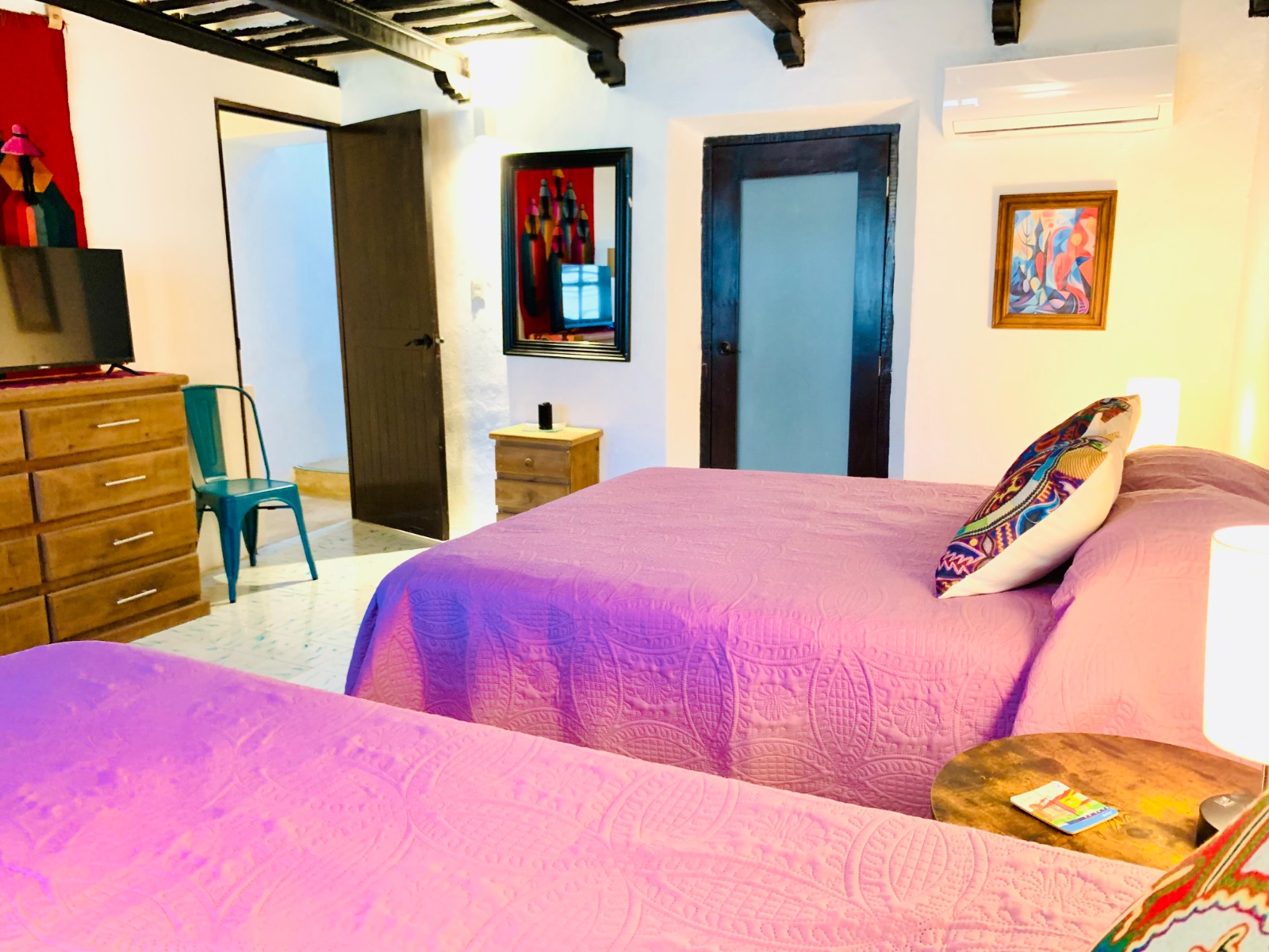 -Secondary room: queen size bed, double bed, TV cabinet, bureaus, lamps.