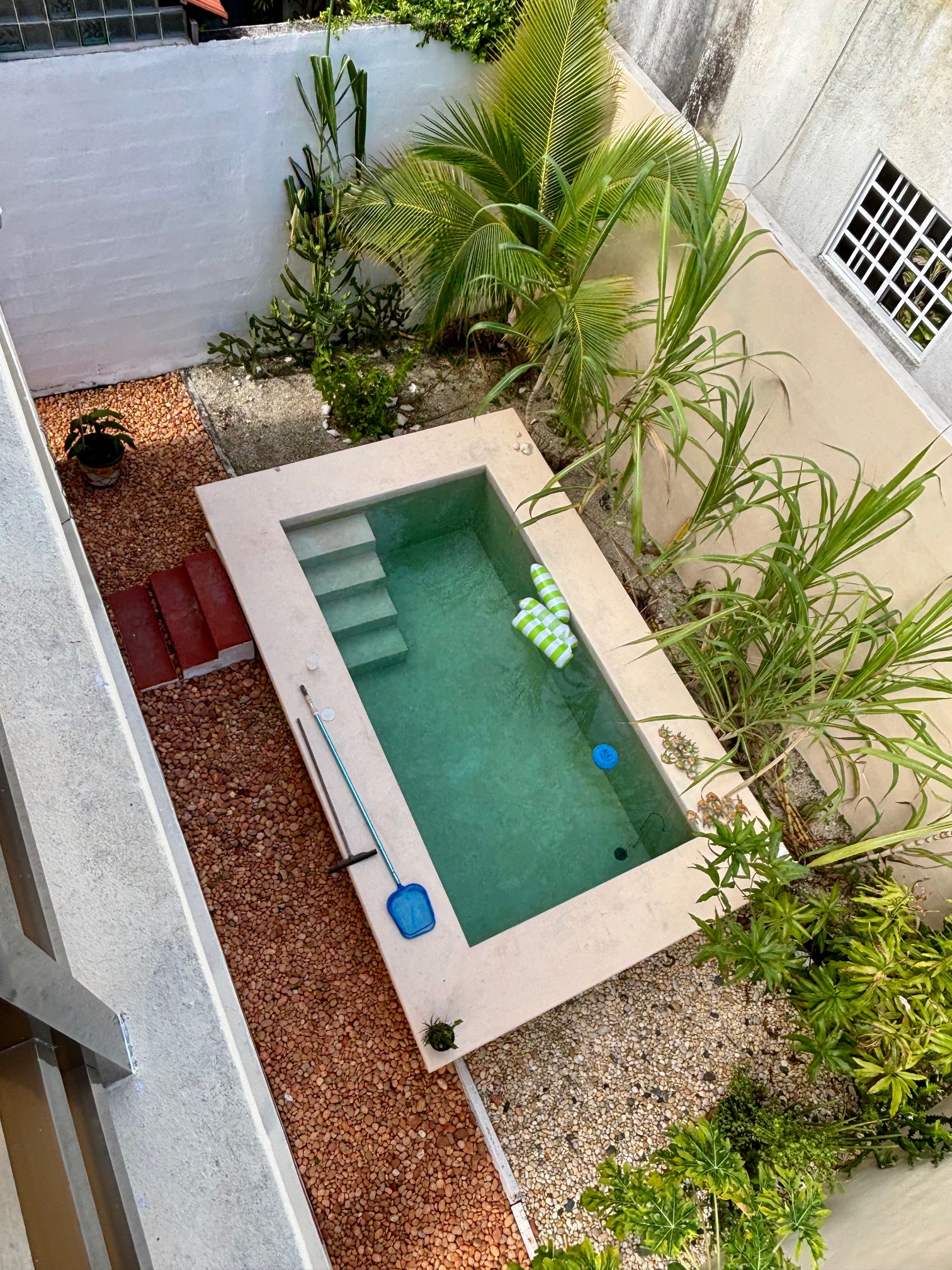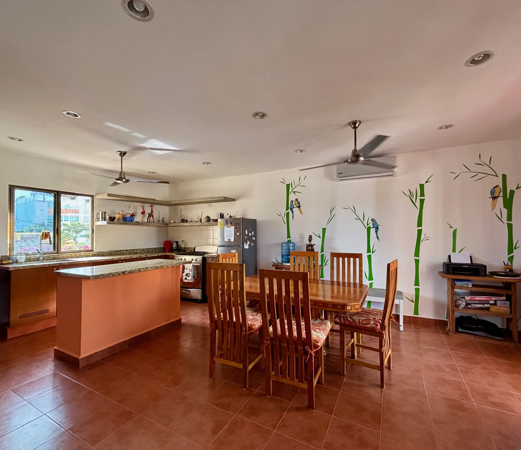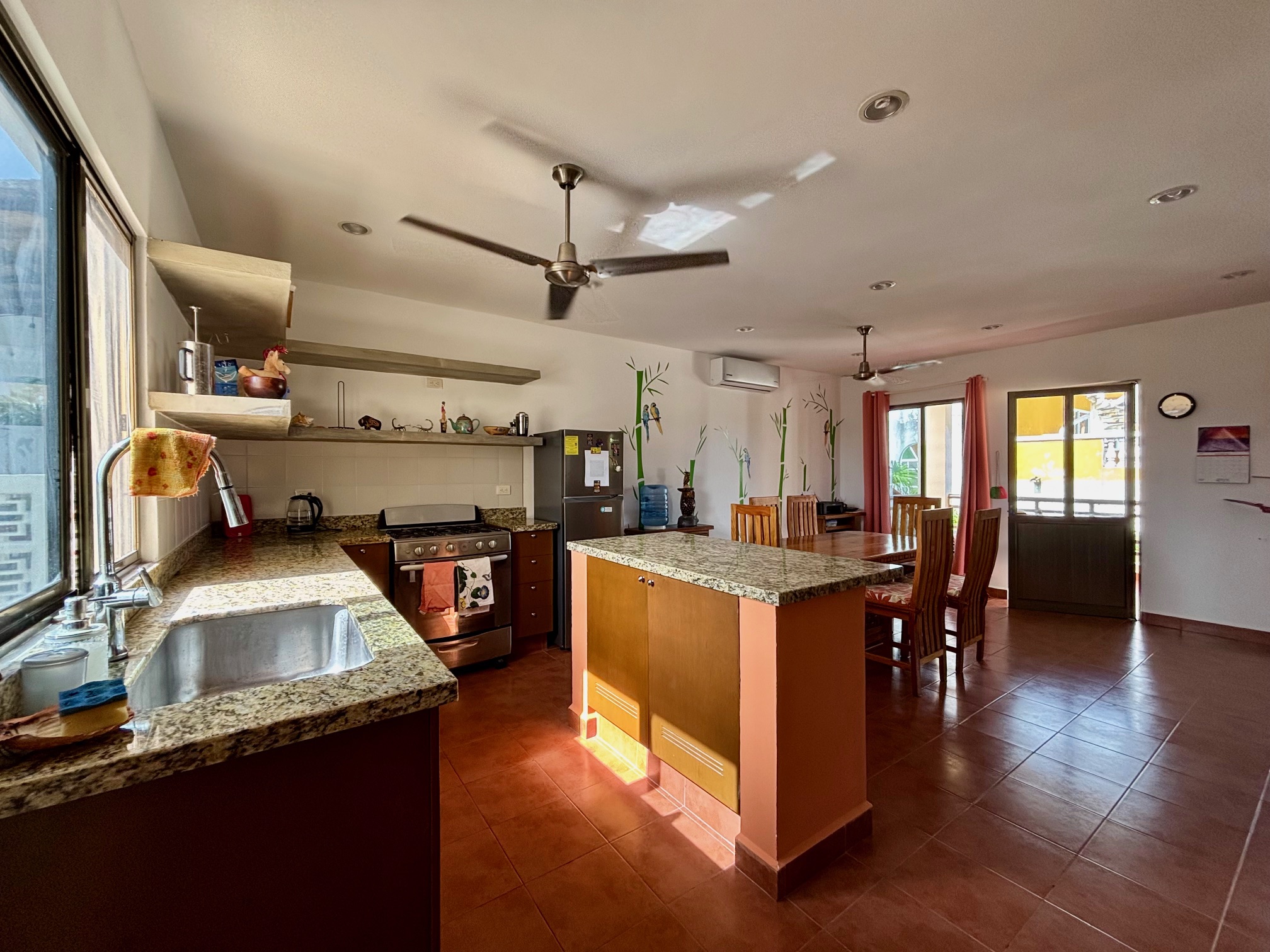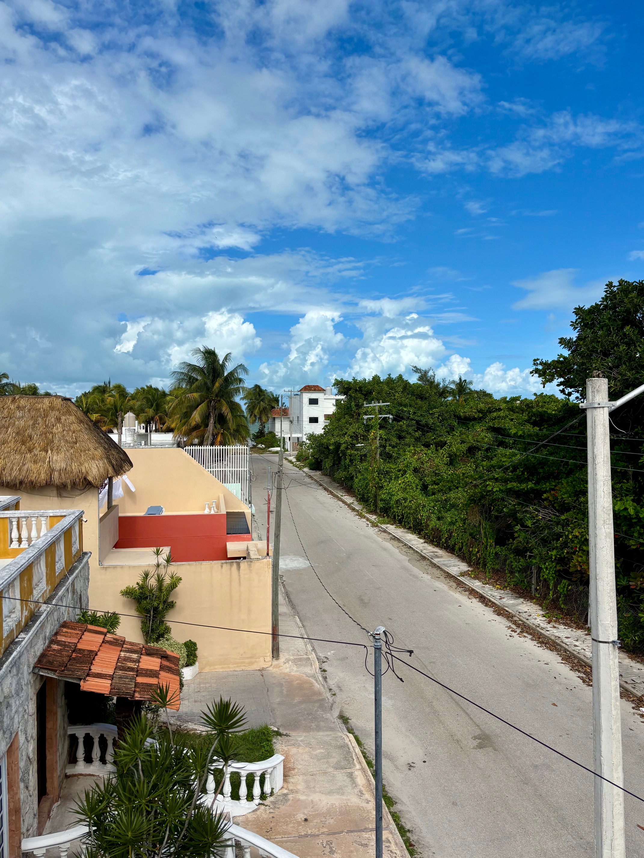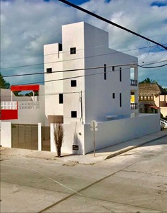 Located on the corner and just a few blocks from the Malecon, in a residential area of Progreso with an American and Canadian community.
